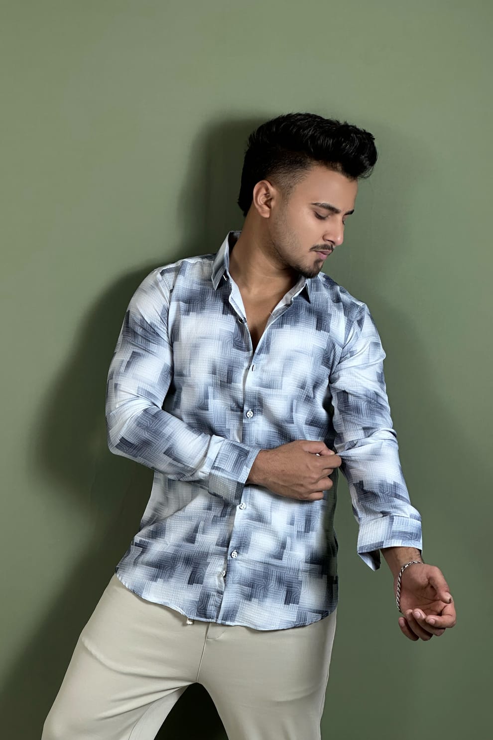 ব্লু হোয়াইট কালার প্রিন্টেড শার্ট-Geo